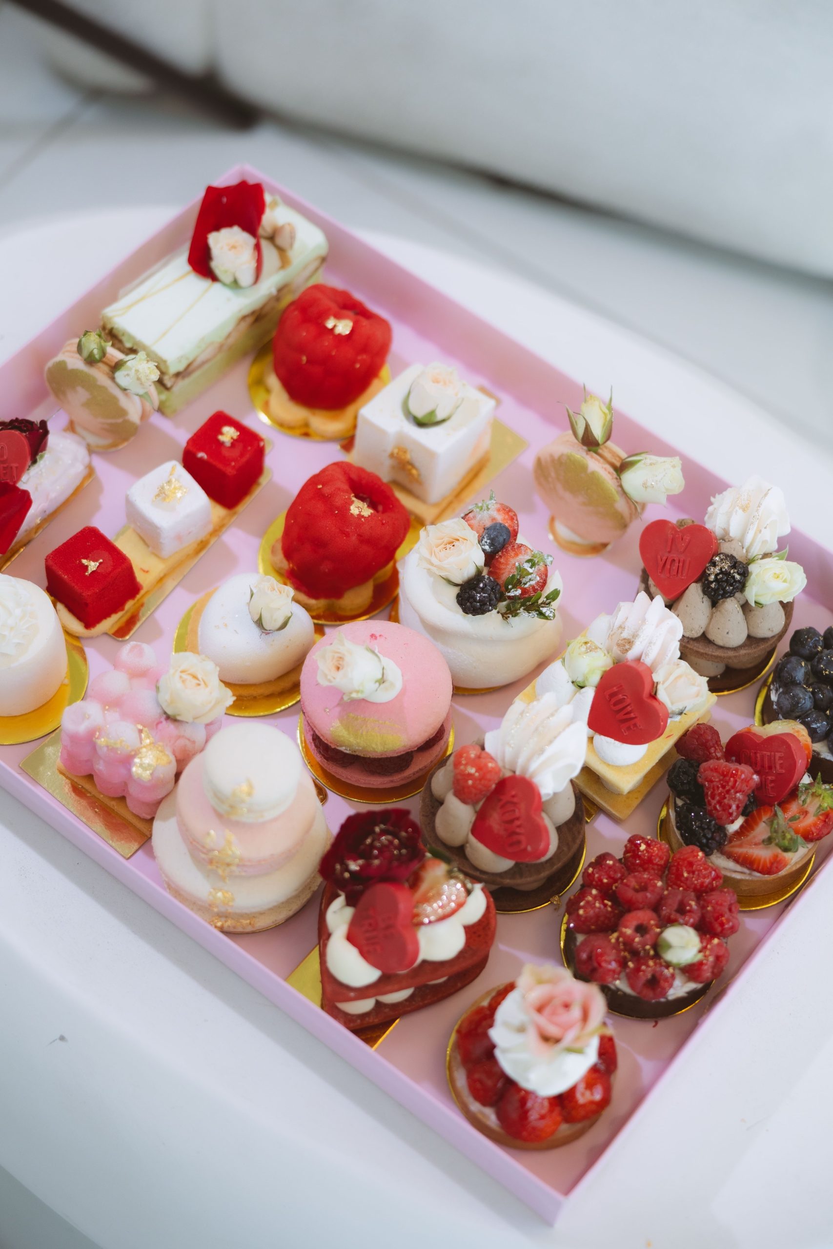 Enjoy the perfect Galentine’s Dessert Board full of our beautiful and delicious assorted desserts including; fruit tarts, cookie cakes, mousses, macarons, eclairs, cake slices and more.